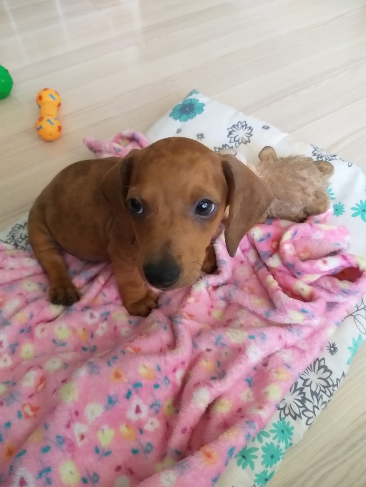 sua raça é o Dachshund, também conhecido por Salsicha...
